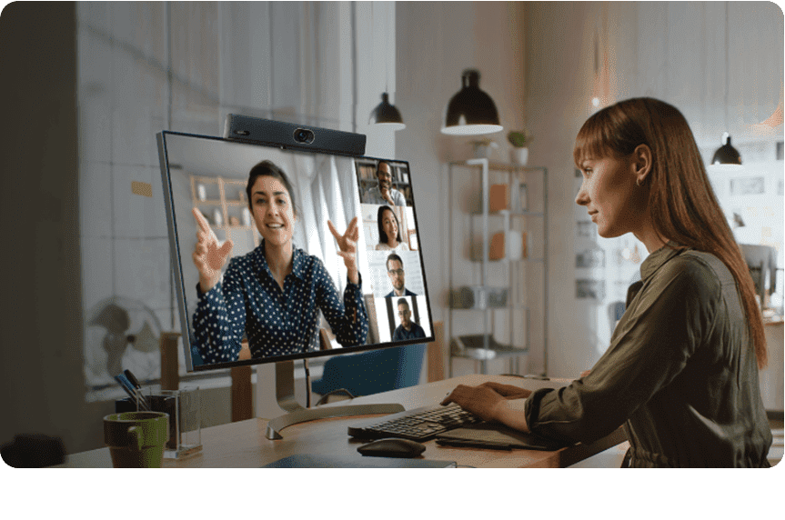 4K Ultra-HD 카메라는 참가자의 프레이밍을 자동으로 조절합니다.